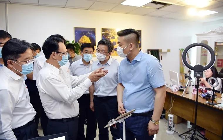 凈月國家電子商務示范基地是長春電商企業和優質網紅重要聚集地。景俊海走進聚發財電子商務公司、神州慧谷電子商務公司、特瑪光陽科技公司等企業,了解鏈路運營模式,觀摩網紅直播現場,并與主播團隊親切交流。他指出,要豐富主題形式,開展網民喜聞樂見的活動,創新網紅帶貨、流量變現等模式,打通生產端到銷售端全產業鏈條,建立完整產業生態體系,提高電子商務、網紅經濟綜合效益。