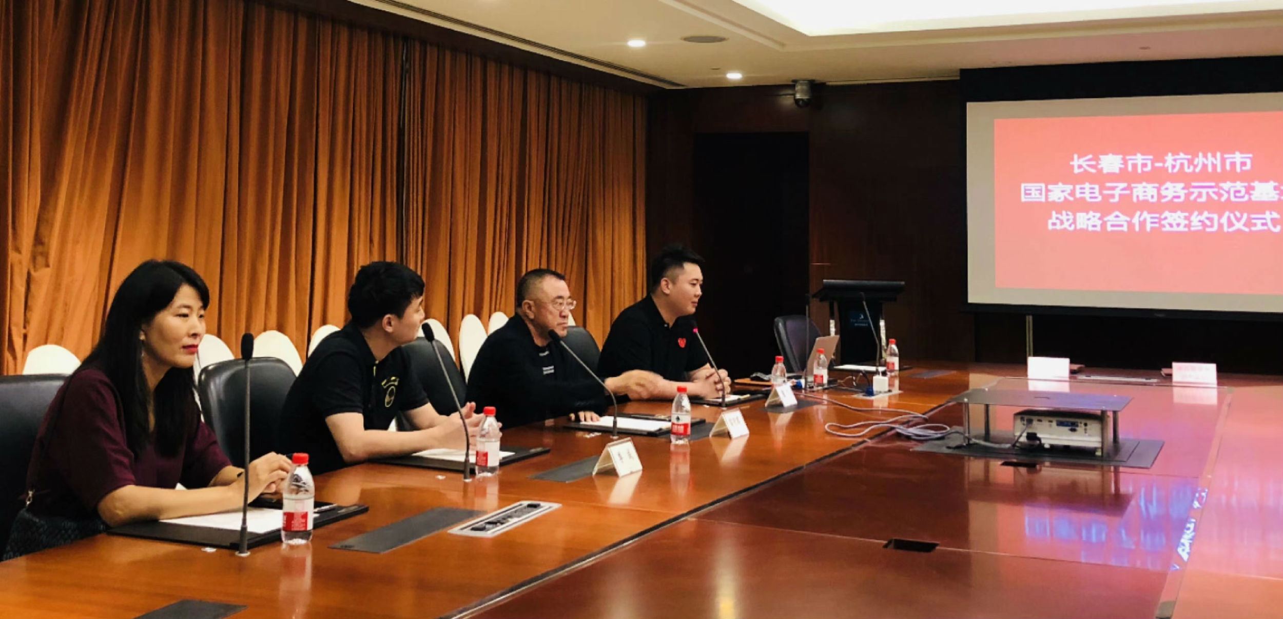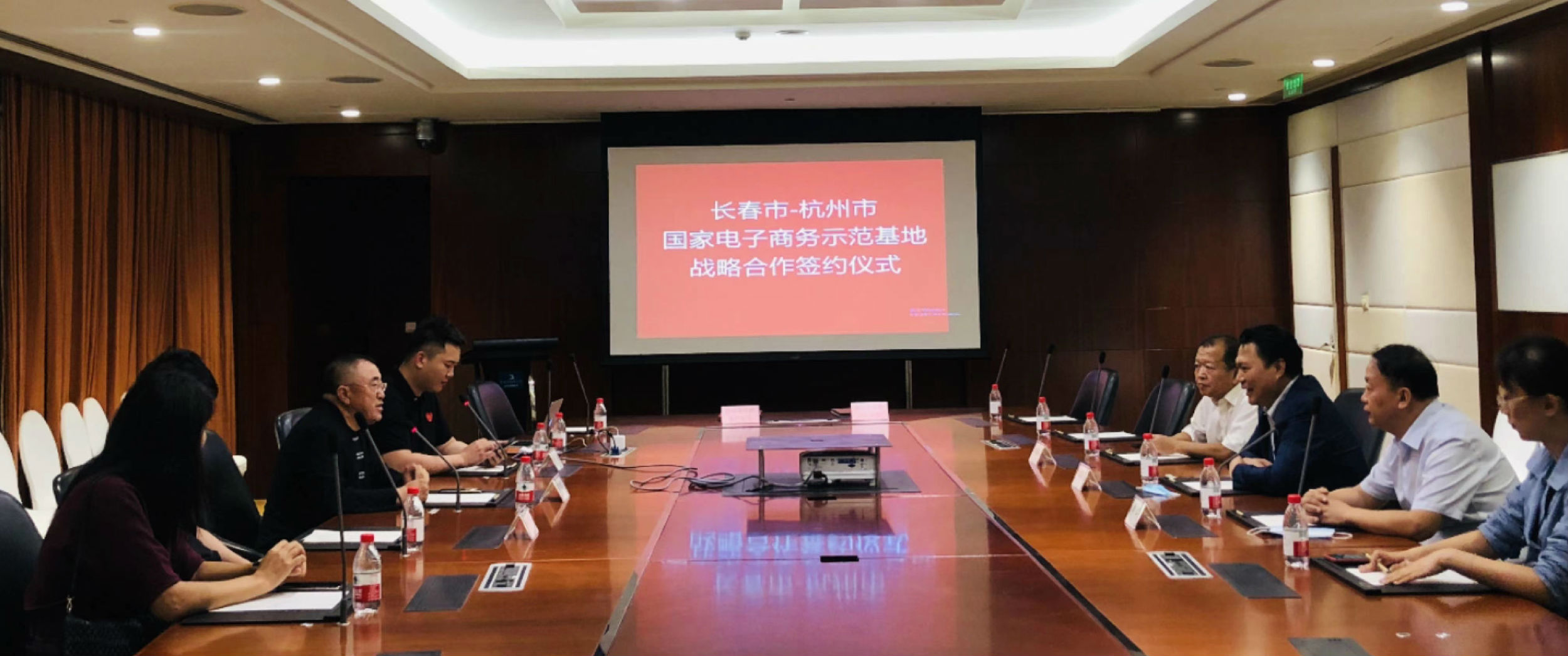 在商務部電商司領導的支持下 ,長春市-杭州市兩個國家電子商務示范基地戰略協議在杭州正式簽訂 ,長春市副市長宋葛龍、市商務局李軍副局長、申東澤處長及朝陽區邢華局長助簽 。
