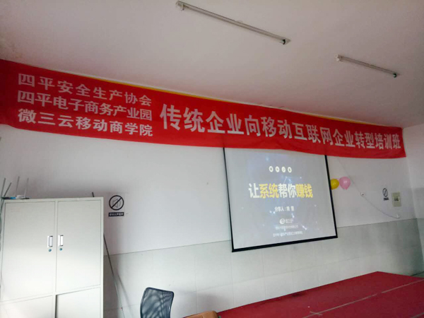 2017年4月15日,由四平電商園攜手四平安全生產協會、微三云移動電商學院開展傳統企業向移動互聯網企業轉型培訓班。